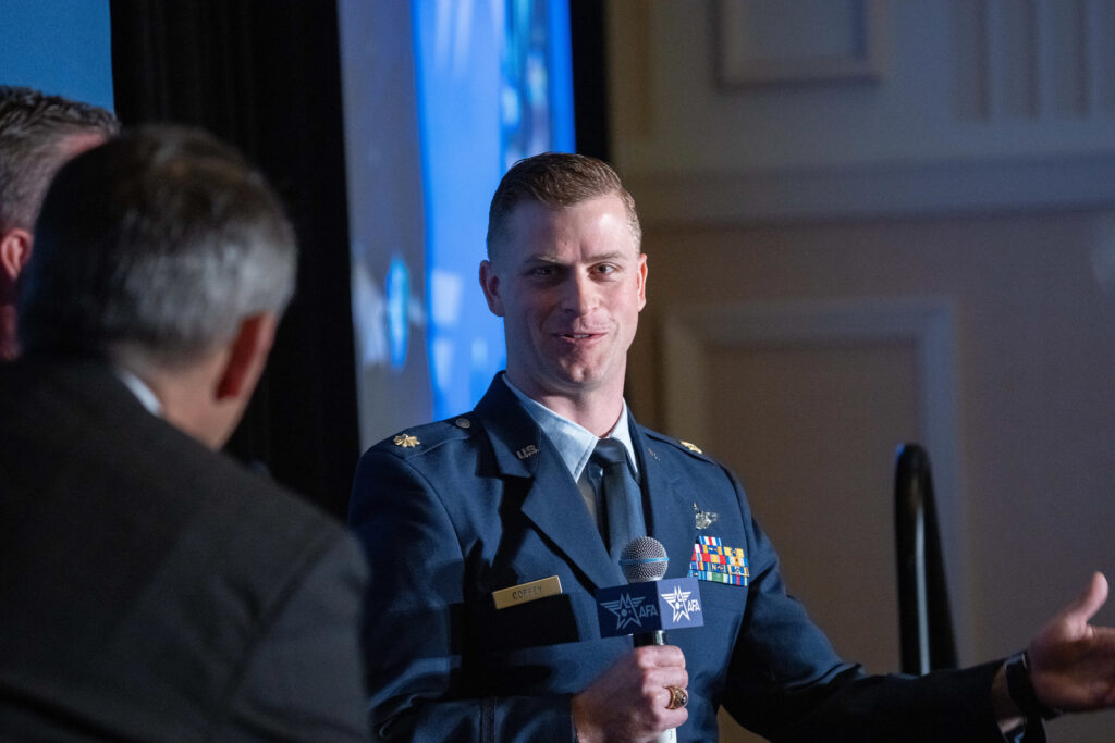 Irish’s father, retired Col. Ben “Whiz” Coffey, has devoted more than three decades to the Air Force mission — four years at the U.S. Air Force Academy, 27 years on active duty, and more than seven years as a Department of the Air Force civilian after his retirement from the uniform. Whiz has also been a steadfast supporter of AFA: He’s attended nearly every Air, Space & Cyber Conference since 2011, served as a delegate to AFA’s National Convention for the past four years, and led the Eglin Chapter in Florida as its president until November 2024.