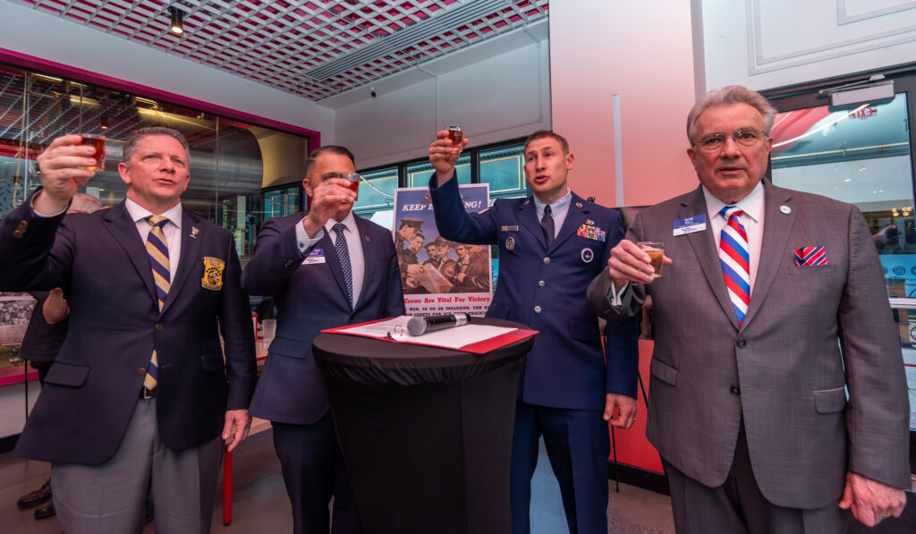 When it came to the toast itself, the attendees tuned in to AFA’s official Doolittle Raiders Memorial Toast, which was livestreamed nationwide and featured keynotes from Chief of Space Operations Gen. B. Chance Saltzman and Air Force Chief of Staff Gen. David W. Allvin. The evening concluded with the traditional Doolittle Raiders commemorative toast, led by Allvin, which echoed the same tradition followed by the surviving Raiders for decades.
